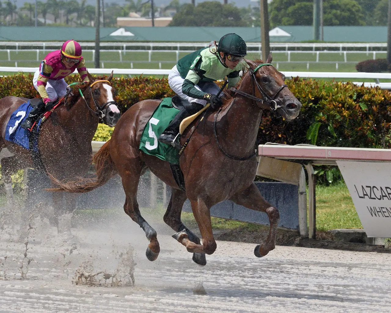 #5 Laugharoo (10-1) has not been seen since finishing a close second after being involved from the start at this distance at Sunland in February. Chestnut has been working well for trainer Barton, who wins with 14% o ...