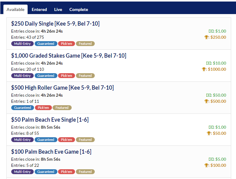 $1,000 Graded Stakes Racing Contest