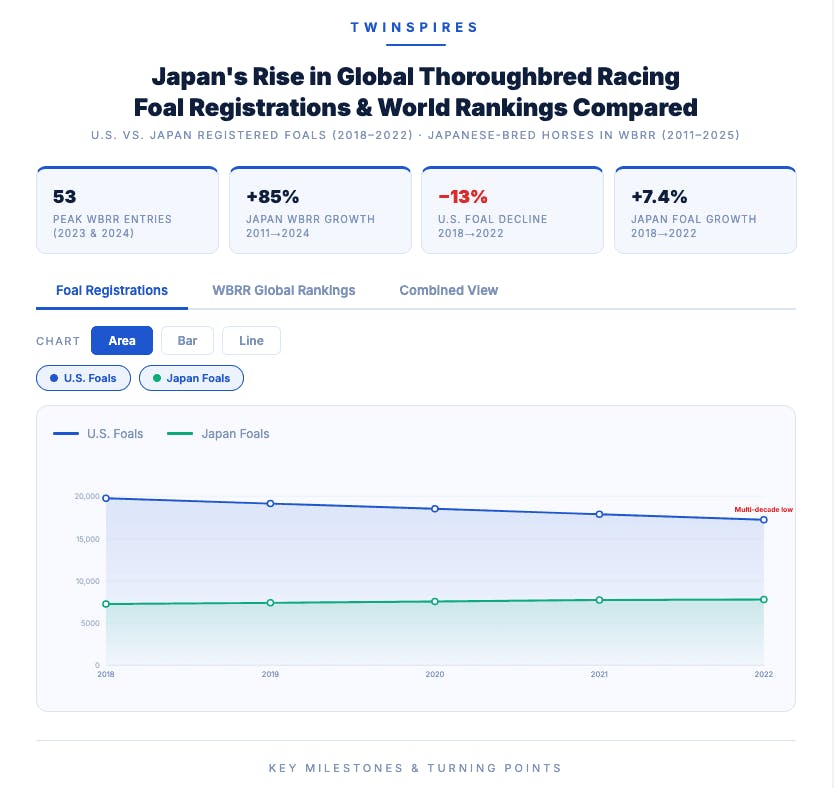 To put these metrics into proper perspective, compare the annual foal crops in Japan and the United States. The U.S. produces more than twice the number of foals. Even so, the 2025 WBRR features a total of 50 U.S.-breds – the exact same as Japan, which is producing high quality from a smaller pool of foals.