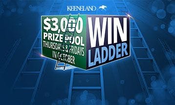 Opt in and place a $5+ single horse WIN wager on selected races at Keeneland each Thursday and Friday in October. Winning wagers move you up the Win Ladder, the more races you win, the bigger your share of the $3,000 prize pool.